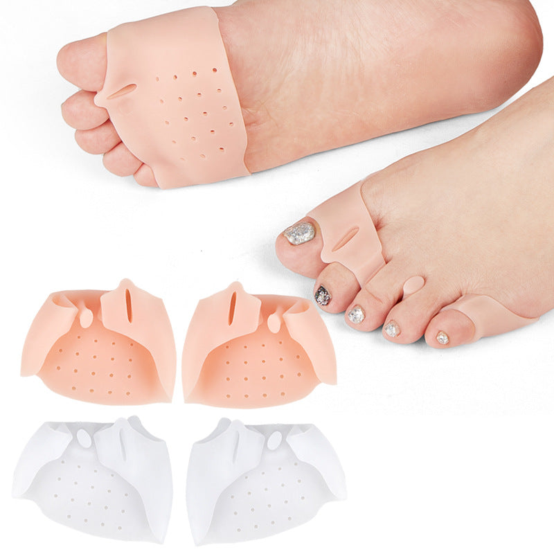 The FootAid Ventilated Silicone Forefoot Sleeve with Toe Separators is a soft, medical-grade support designed to cushion the ball of the foot while gently aligning the toes. With its built-in separators and breathable perforated design, it reduces pressure, friction, and crowding caused by metatarsalgia, bunions, toe overlap, and forefoot fatigue.