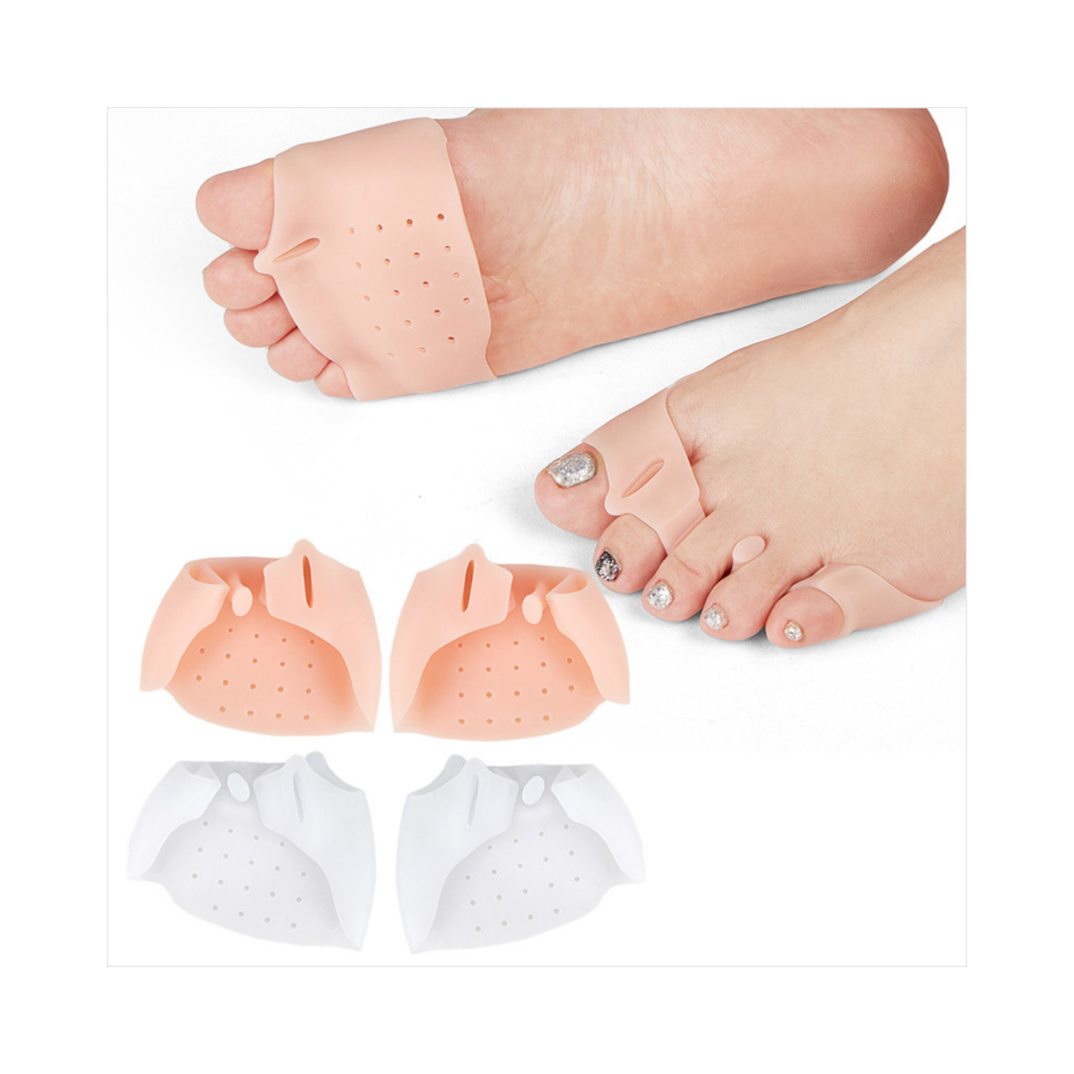 The FootAid Ventilated Silicone Forefoot Sleeve with Toe Separators is a soft, medical-grade support designed to cushion the ball of the foot while gently aligning the toes. With its built-in separators and breathable perforated design, it reduces pressure, friction, and crowding caused by metatarsalgia, bunions, toe overlap, and forefoot fatigue.